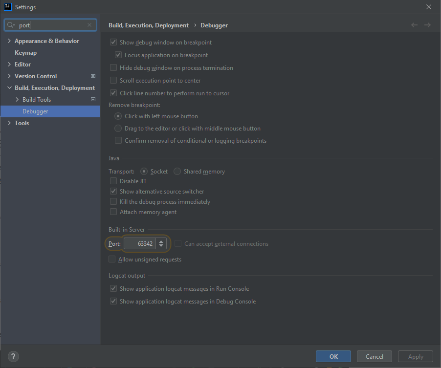 Seems like that the wrong port was set here. At least I thought so because by changing this default value to the suggested port 12345, I doomed myself for the next few hours. Do not change this value. Leave it as it is. For the curious: If you decide to change this setting, you might encounter a different error message from the debugger.
