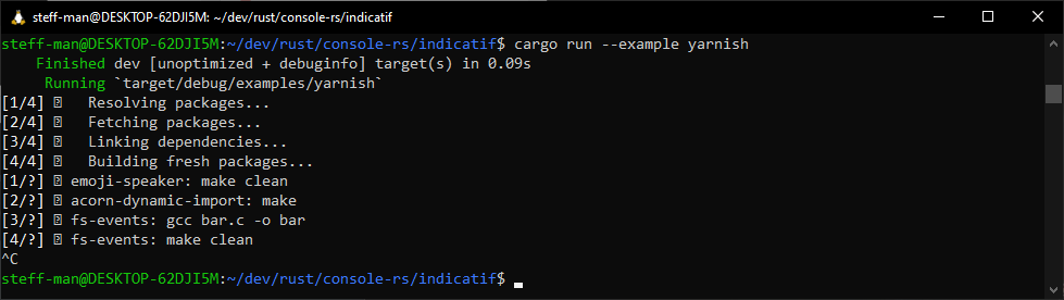 For many modern CLI tools I observed that emojis found their way into the terminal. In the example above I used the indicatif Rust library. It allows developers to provide some eye-candy for the user. When testing this library, I had the anticlimactic experience of those characters not showing up properly, but being replaced with the default placeholder character in the WSL terminal.